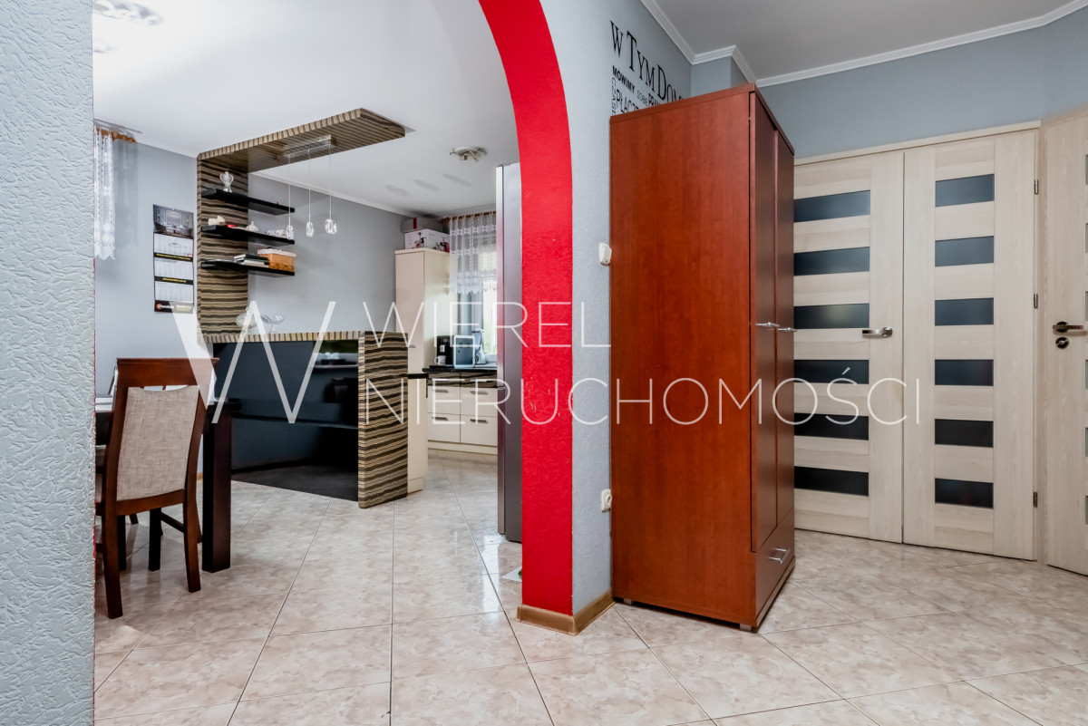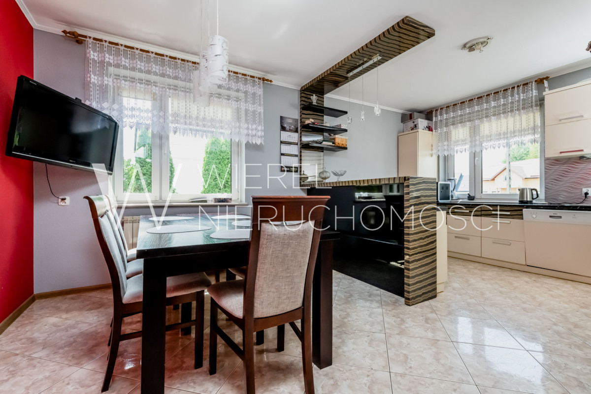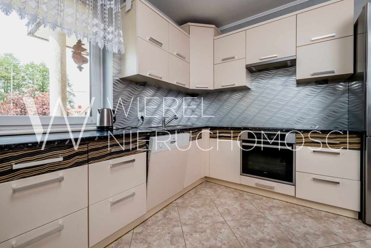 Funkcjonalna kuchnia z jadalnią oraz duży, jasny salon z drugą częścią jadalnianą i bezpośrednim wyjściem na taras. Dodatkowo łazienka z prysznicem oraz osobne WC.