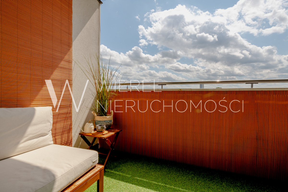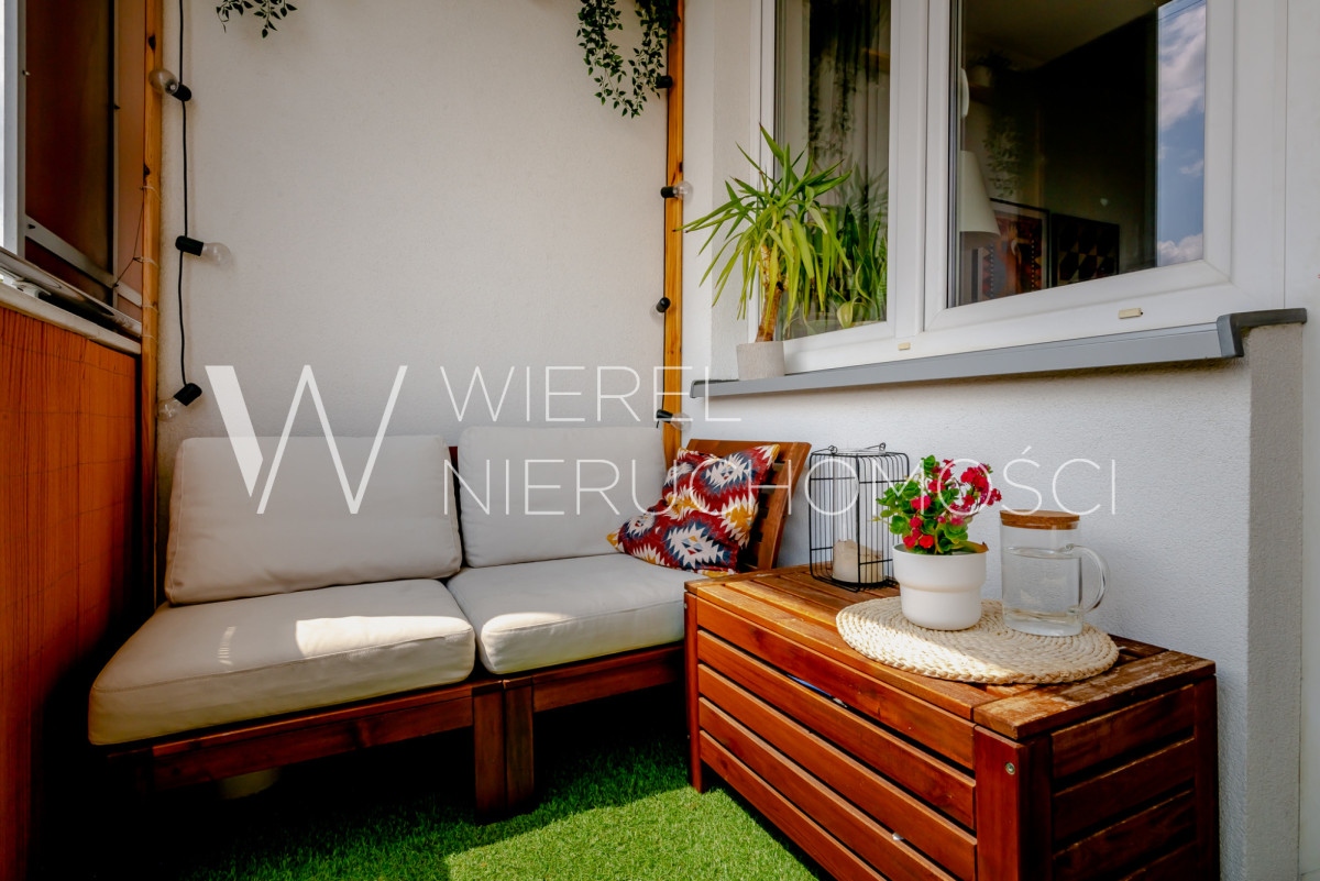 Pięknie zagospodarowany balkon typu loggia - wymarzona przestrzeń na poranną kawę lub wieczorny relaks.