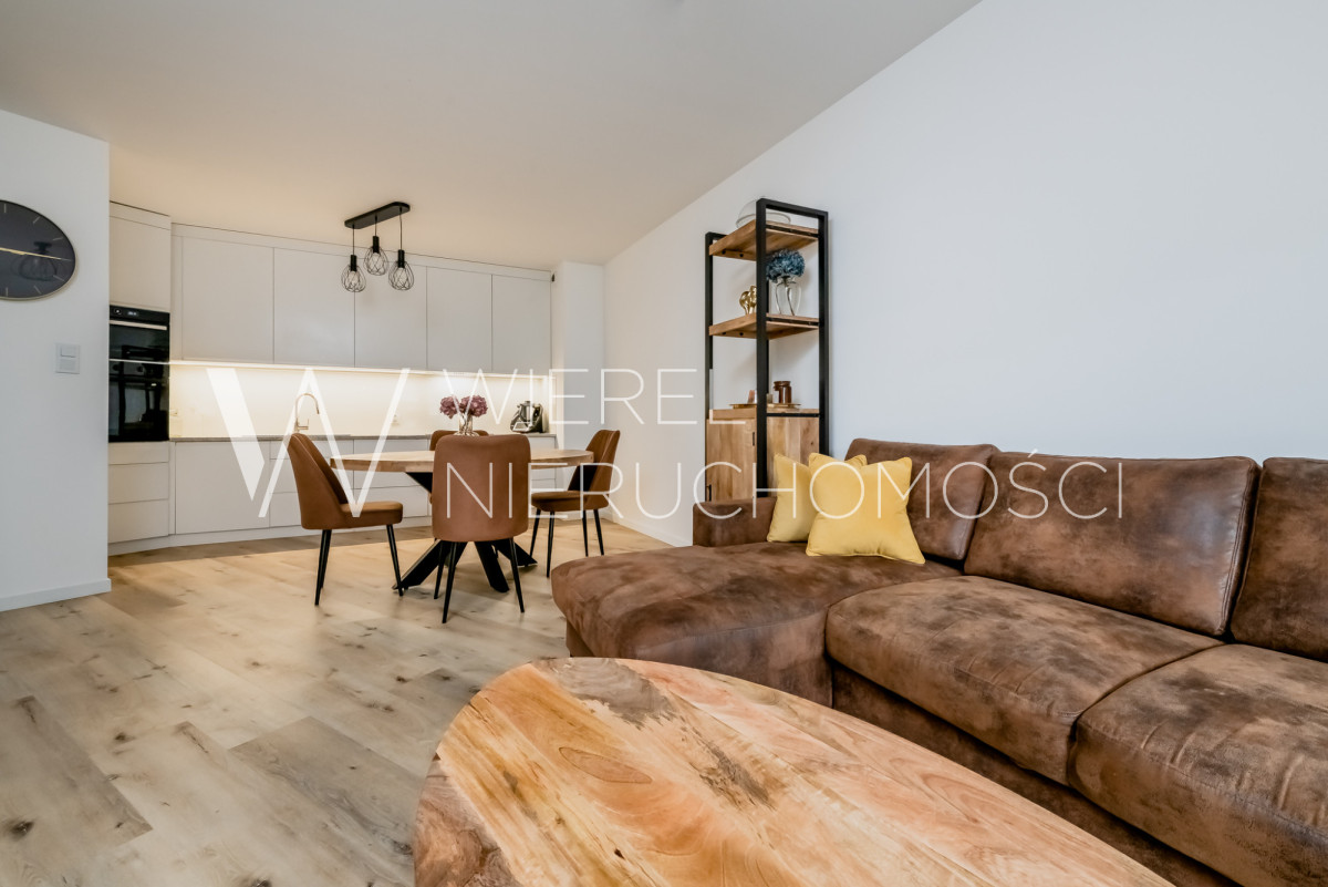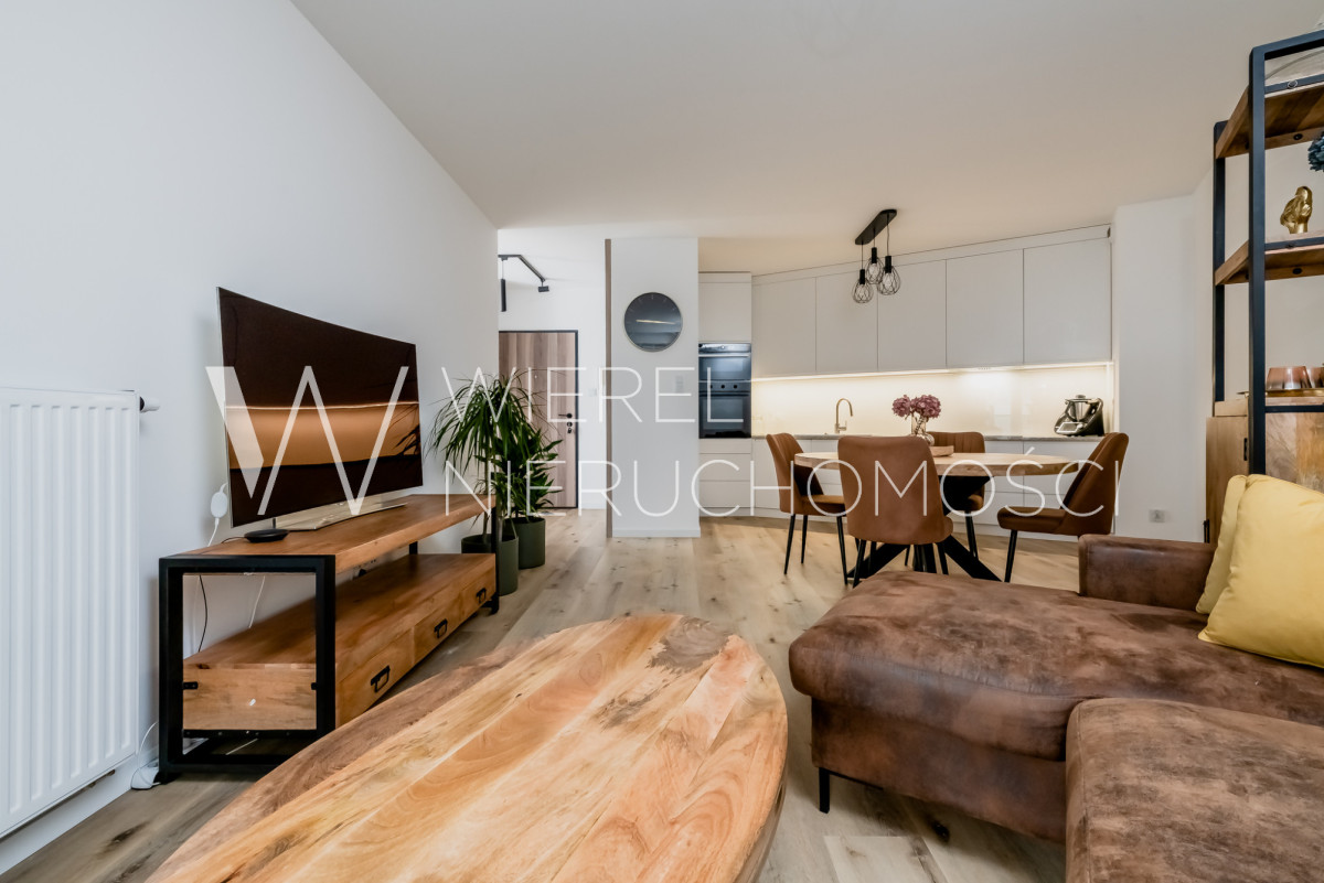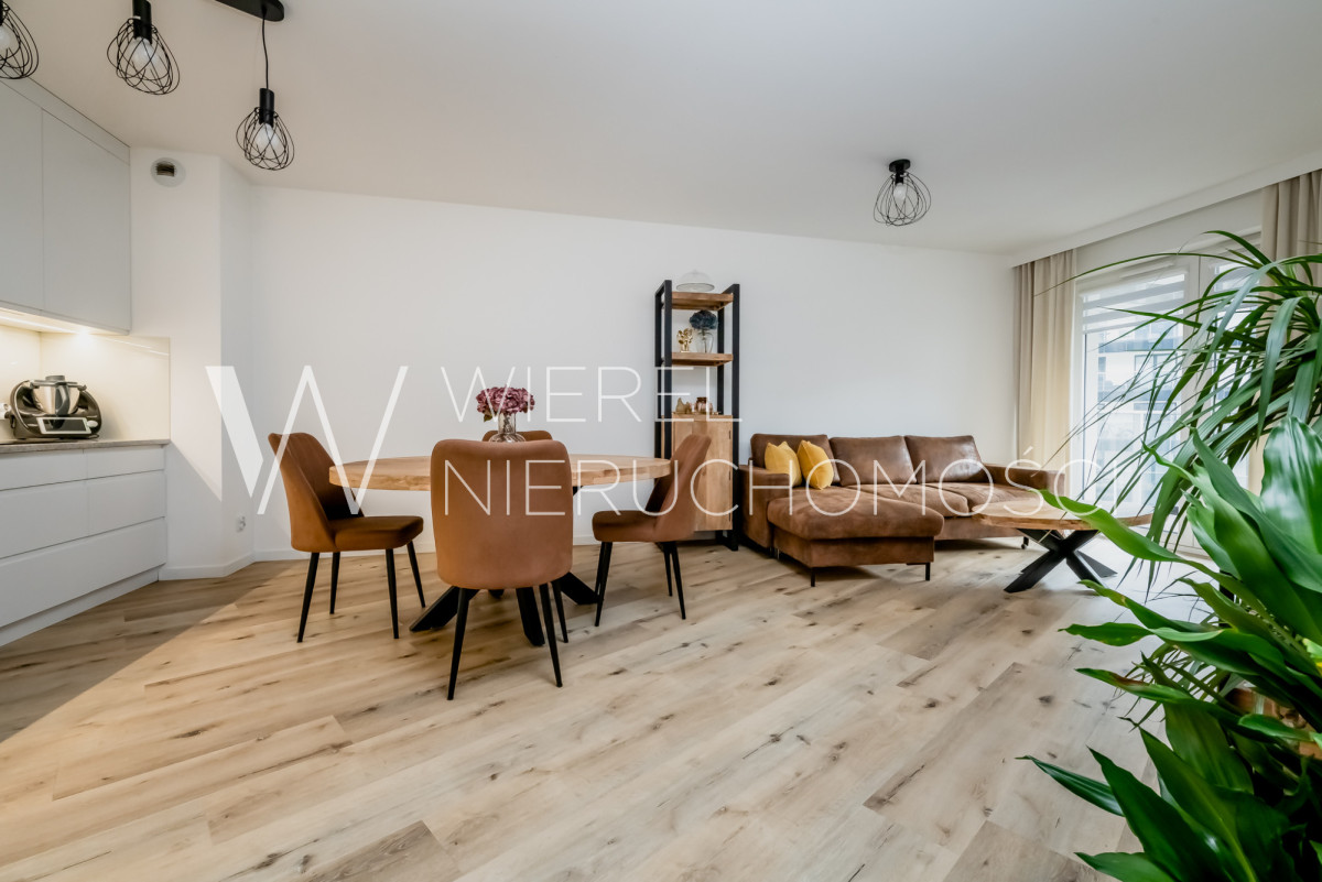 Wnętrze zostało urządzone w wysokim standardzie, z dbałością o każdy detal. Jasne kolory i funkcjonalny układ sprawiają, że przestrzeń jest niezwykle przytulna i komfortowa.