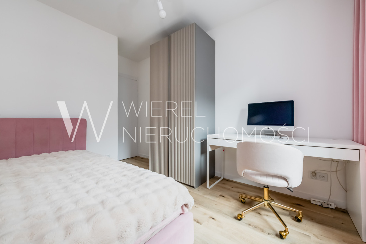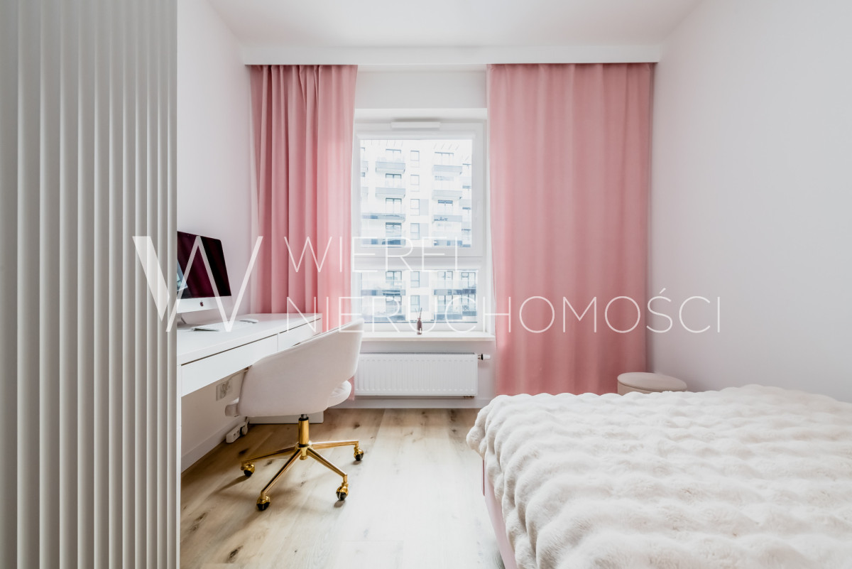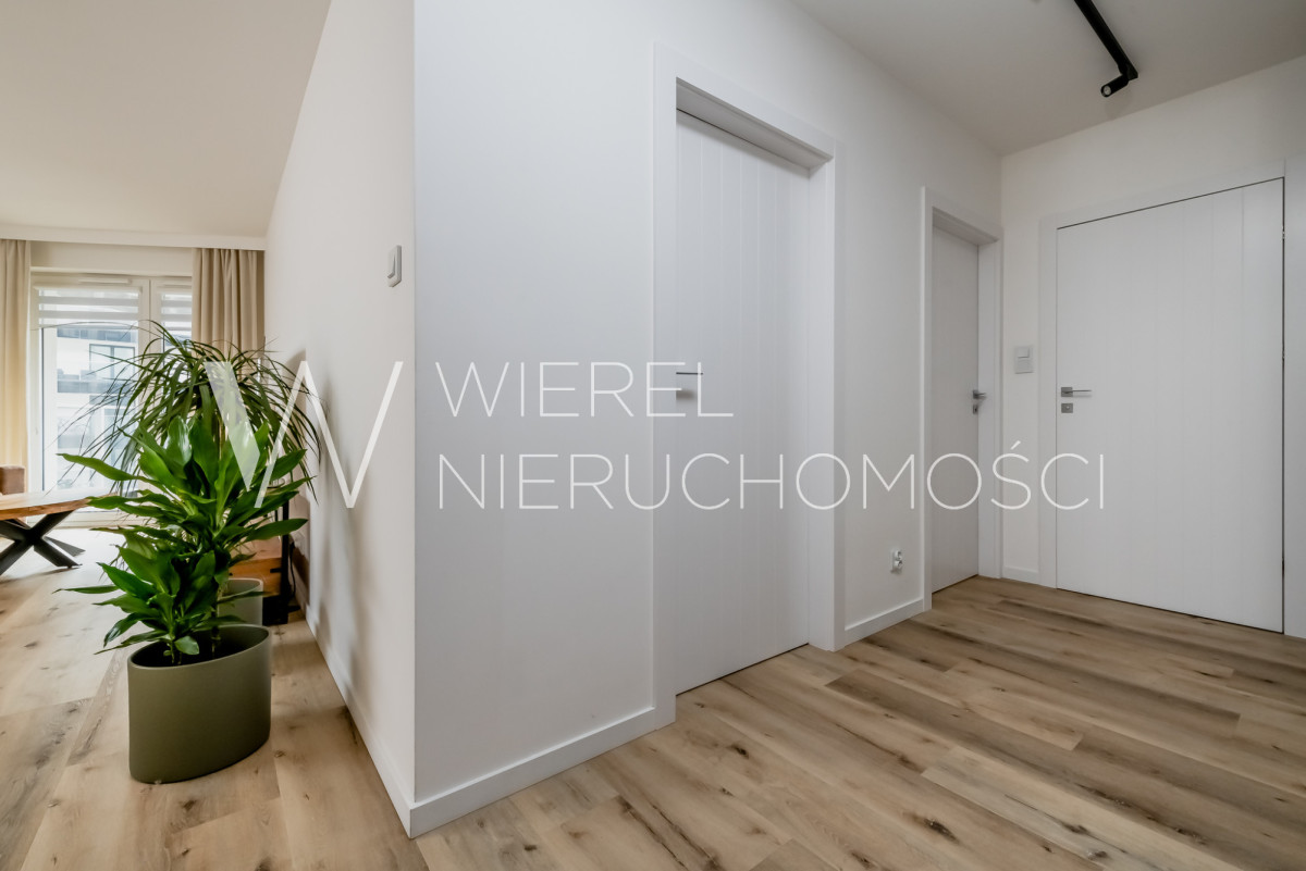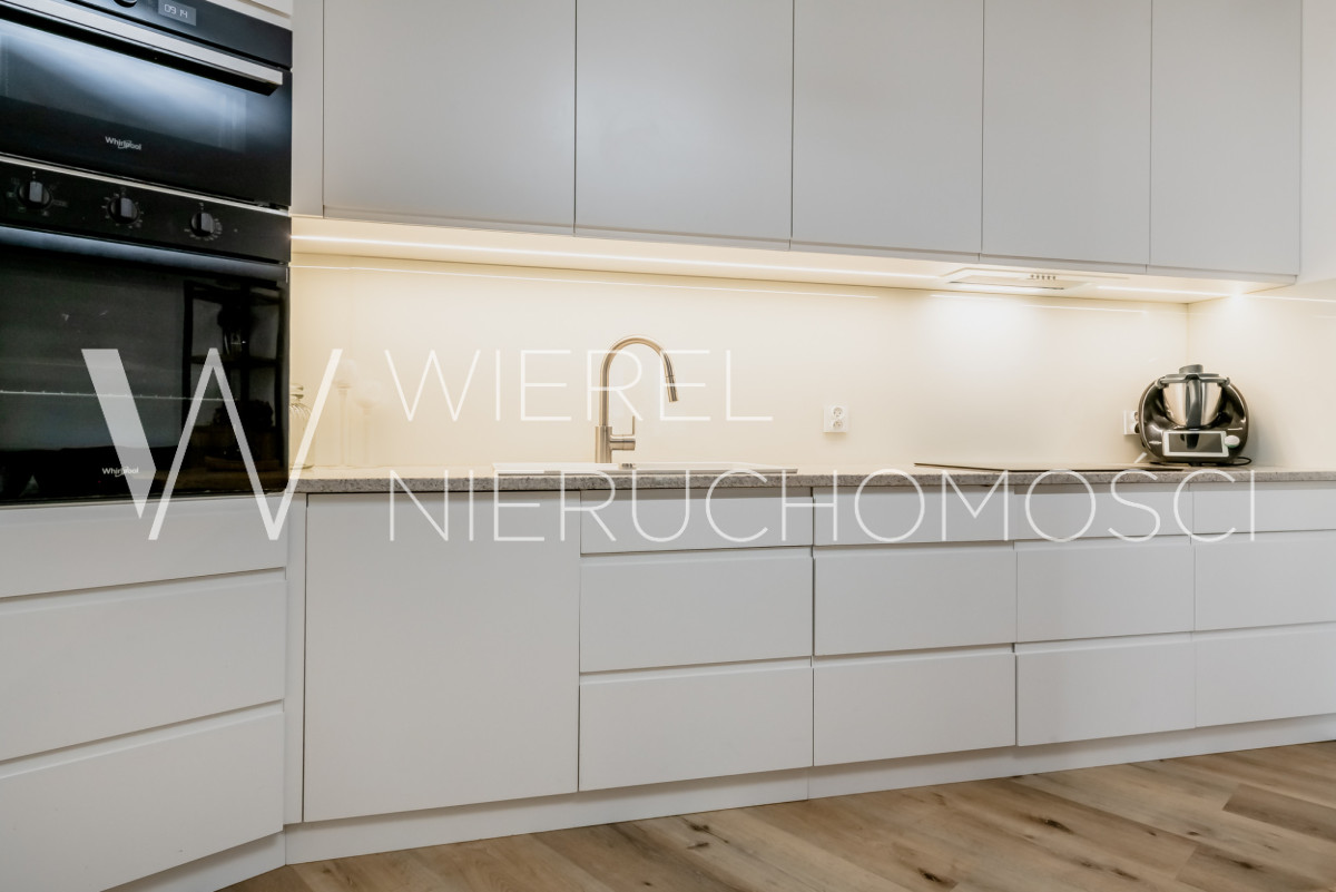 Wnętrze zostało urządzone w wysokim standardzie, z dbałością o każdy detal. Jasne kolory i funkcjonalny układ sprawiają, że przestrzeń jest niezwykle przytulna i komfortowa.