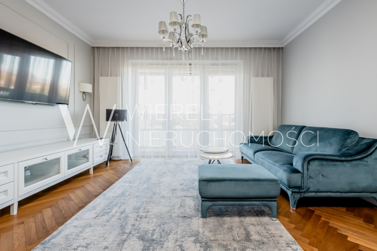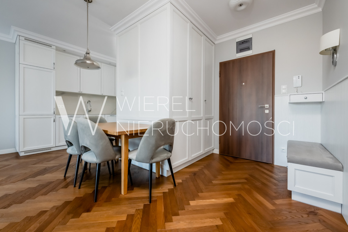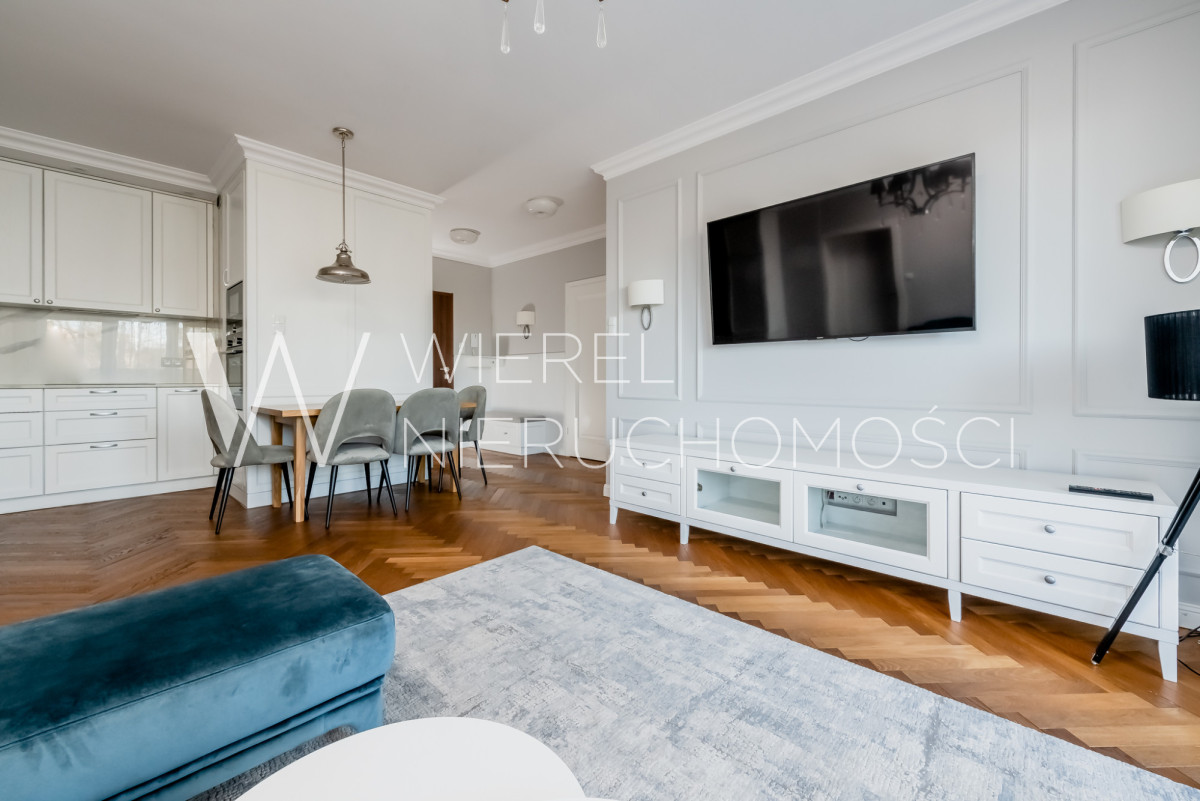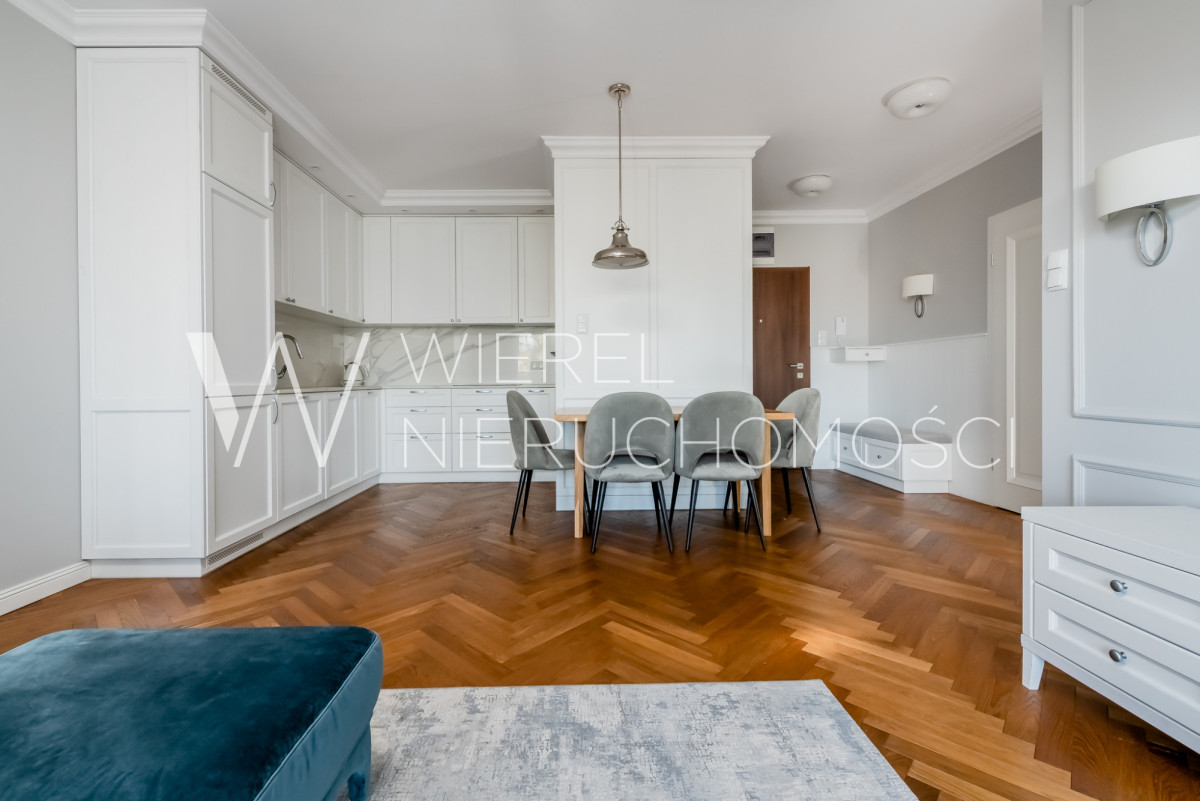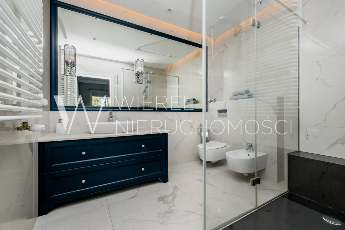 Mieszkanie jest w pełni umeblowane i wykończone w bardzo wysokim standardzie. Wnętrze zostało zaprojektowane z dbałością o detale: